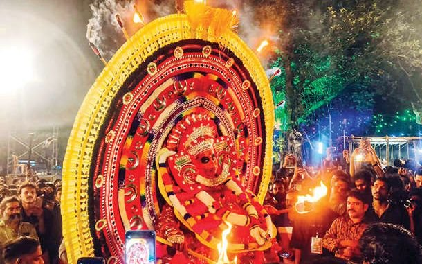 ഉത്തരകേരളത്തിന് പുറത്ത് പൂർണാനുഷ്ഠാനങ്ങളോടെ കളിയാട്ടം അരങ്ങേറുന്നതും ചുടലക്കളത്തിൽ തെയ്യം കെട്ടിയാടുന്നതും പാമ്പാടിയിലെ ഐവർമഠം ശ്മശാനത്തിൽ മാത്രമാണ്. കണ്ണൂർ ഇരിട്ടി സ്വദേശി അനീഷ് പെരുമലയന്റെ മുഖ്യകാർമികത്വത്തിലാണ് തെയ്യം അരങ്ങേറിയത്.