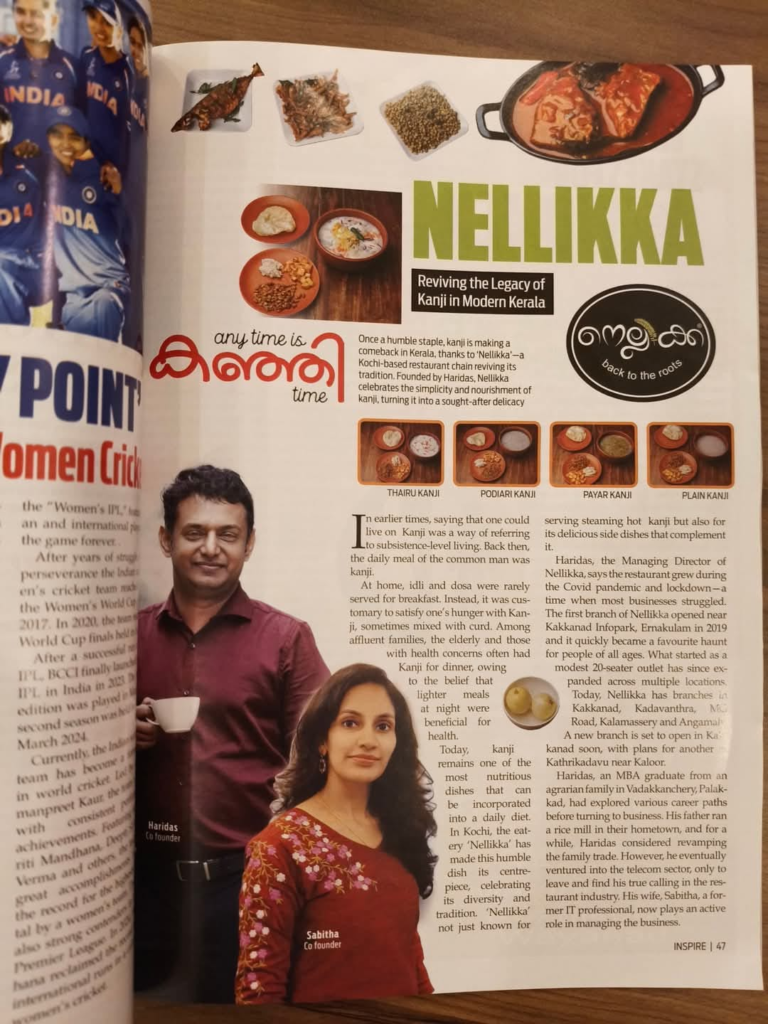 എന്ന വരികളിലെ അർത്ഥം ഇന്ന് അവിടെ ഉള്ളവർക്ക് അറിയാം. പ്രായമായവർ തുടങ്ങി ന്യൂ ജെൻ പിള്ളേർ വരെ ഇന്ന് കഞ്ഞിയുടെ രുചി അറിഞ്ഞ്, ഗുണമറിഞ്ഞ് അവരുടെ രുചി കൂട്ടിൽ കഞ്ഞിയെ ചേർത്തി. ഹരിദാസിന്റെ കഠിനാധ്വാനം ഇപ്പോൾ നെല്ലിക്ക എന്ന റെസ്റ്റ്വാറന്റ്നെ മറ്റൊരു തലത്തിലേക്ക് ഉയർത്തി. ഇനി അടുത്ത് തന്നെ കടവന്ത്രയിലും, കാത്രിക്കടവിലും പുതിയ ഔട്ലെറ്റുകൾ ഈ വർഷം തുറന്നു പ്രവർത്തിക്കും. ഹരിയുടെ ഈ യാത്രയിൽ അദ്ദേഹത്തിന്റെ ഭാര്യ മുൻ ഐ ട്ടി പ്രൊഫഷണലുമായ സബിതയും പങ്കാളിയാണ്.
