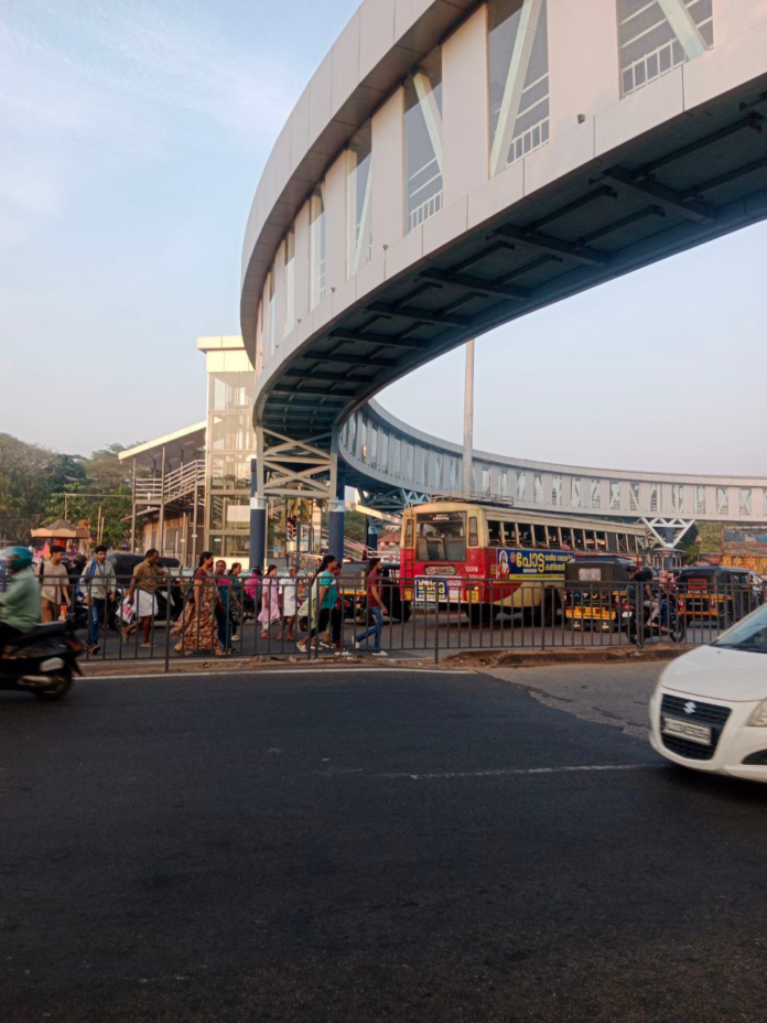 റോഡ് പാതി മുറിച്ചുകടന്ന കാൽനടയാത്രക്കാർ ബാരിക്കേഡിനു സമീപം തടിച്ചുകൂടി നിൽക്കുമ്പോൾ ഇവർക്കു സമീപത്തുകൂടിയാണ് ബസുകളടക്കം ചീറിപ്പാഞ്ഞുപോകുന്നത്. ആകാശപ്പാത സ്ഥാപിച്ചിട്ട് ഒന്നര വർഷമായെങ്കിലും ഇത് റോഡ് മുറിച്ചുകടക്കുന്നതിനായി ഉപയോഗിക്കാൻ നഗരവാസികൾ ഇപ്പോഴും ശീലിച്ചിട്ടില്ല. പ്രതിദിനം 20,000 പേർ ഇത് ഉപയോഗിക്കുമെന്നായിരുന്നു സ്ഥാപിച്ച സമയത്തെ കണക്കുകൂട്ടലെങ്കിലും ഇപ്പോഴും 9000 പേർ മാത്രമേ ഒരു ദിവസം ഇത് ഉപയോഗിക്കുന്നൂവെന്ന് അമൃത് പ്രോജക്ട് കോ ഓർഡിനേറ്റർ രാഹുൽ വ്യക്തമാക്കി.