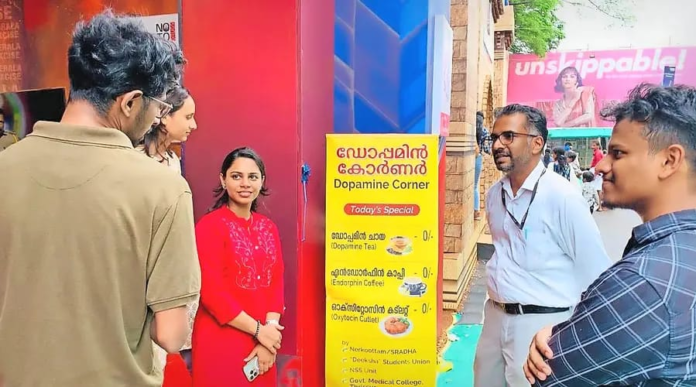 തൃശൂർ:ഒരു ഡോപ്പമിൻ ചായ കുടിച്ചാലോ, കൂടെ ഓക്സിറ്റോസിൻ കട്ലറ്റും കഴിക്കാം. തൃശൂർ പൂരം പ്രദർശനത്തിലൂടെ കടന്നുപോവുമ്പോൾ ഡോപ്പമിൻ കോർണർ കാണാം. ഇന്നത്തെ സ്പെഷലായ ഈ വിഭവങ്ങൾ തേടി അകത്തേക്ക് കയറിയാൽ കൃത്രിമ ലഹരി വസ്തുക്കൾ ഉപയോഗിക്കാതെ ജീവിത ലഹരി നേടാം. എക്സൈസ് വിമുക്തി പവലിയനിലാണ് ലഹരിക്കെതിരായ ബോധവൽക്കരണം. ചായക്കടയിലെ ഭക്ഷണ പദാർഥങ്ങളുമായി ഉപമിച്ച് എംബിബിഎസ് വിദ്യാർഥികൾ പൊതുജനങ്ങളുമായി സംവദിക്കുകയാണ്. എക്സൈസ് വിമുക്തി മിഷനുമായി സഹകരിച്ച് മെഡിക്കൽ കോളേജ് സൈക്യാട്രി വിഭാഗം, എൻഎസ്എസ്, കോളേജ് യൂണിയൻ എന്നിവരുടെ നേതൃത്വത്തിലാണ് പരിപാടി. ക്ലാസ് കഴിഞ്ഞശേഷം വിദ്യാർഥികൾ പവലിയനിലെത്തും. വൈകിട്ട് നാലുമുതൽ എട്ടുവരെ ബോധവൽക്കരണം. തലച്ചോറും പ്രദർശിപ്പിച്ച് കാര്യങ്ങൾ വിശദീകരിക്കുന്നു. ഡോപ്പമിൻ കോർണർ അസി. എക്സൈസ് കമീഷണർ പി കെ സതീഷാണ് ഉദ്ഘാടനം ചെയ്തത്. തൃശൂർ ഗവ. മെഡിക്കൽ കോളേജ് സൈക്യാട്രി വിഭാഗം അസോസിയറ്റ് പ്രൊഫസർ ഡോ. സെബിന്ദ് കുമാർ, വിമുക്തി മിഷൻ ജില്ലാ കോ–ഓർഡിനേറ്റർ ഷഫീഖ് യൂസഫ് എന്നിവർ നേതൃത്വം നൽകുന്നു. എല്ലാവിധ ലഹരികളും തലച്ചോറിൽ പ്രവർത്തിക്കുന്നത് ഡോപ്പമിൻ വഴിയാണെന്ന് ഡോ. സെബിന്ദ് കുമാർ പറഞ്ഞു. നല്ല കൂട്ടുകെട്ട്, നല്ല പാട്ടുകൾ, നടത്തം, വ്യായാമം, വിനോദം, കായിക പരിപാടികൾ എന്നിവ വഴി എൻഡോർഫിൻ, ഓക്സിറ്റോസിൻ, സെറാറ്റോണിൻ എന്നിവ ഉൽപാദിപ്പിച്ച്, സ്വാഭാവിക ലഹരികൾ തരും. കൃത്രിമ ലഹരി ഉപയോഗിക്കുമ്പോൾ സ്വാഭാവിക ആനന്ദം നഷ്ടമാവും. അപകടം വരുത്തും. ഇത്തരത്തിൽ തലച്ചോറിലുണ്ടാകുന്ന മാറ്റങ്ങൾ ഇവിടെ വിശദീകരിച്ച് നൽകുന്നു.