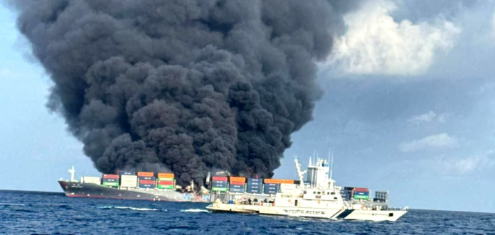 ഇന്നലെ ഉച്ചയോടെയാണ് കൊളംബോയില് നിന്ന് മുംബൈയിലേക്ക് പുറപ്പെട്ട ചരക്കുകപ്പലിന് തീപിടിച്ചത്. ബേപ്പൂര്-അഴീക്കല് തുറമുഖങ്ങളുടെ പടിഞ്ഞാറുഭാഗത്തായി 78 നോട്ടിക്കൽ മൈൽ അകലെ ഉള്ക്കടലിലാണ് സംഭവം നടന്നത്. ചൈനീസ്, മ്യാന്മര്, ഇന്തോനേഷ്യന്, തായ്ലാന്ഡ് സ്വദേശികളാണ് അപകടത്തില്പ്പെട്ട കപ്പലില് ഉണ്ടായിരുന്നത്. തീപടര്ന്ന ഉടന് കപ്പലില് ഉണ്ടായിരുന്ന പതിനെട്ട് പേര് കടലിലേയ്ക്ക് ചാടി രക്ഷപ്പെട്ടു.