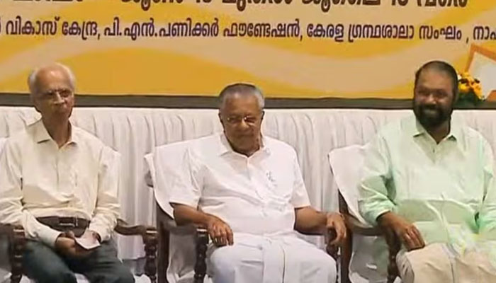 മുഖ്യമന്ത്രിക്ക് സ്വാഗതംപറഞ്ഞ പി.എന് പണിക്കര് ഫൗണ്ടേഷന് വൈസ് ചെയര്മാന് എന്. ബാലഗോപാലാണ് മുഖ്യമന്ത്രിയെ വാനോളം പുകഴ്ത്തിയത്. ഇന്ത്യന് രാഷ്ട്രീയത്തിലെ ലെജൻഡ് എന്നും വരദാനമെന്നുമെല്ലാം മുഖ്യമന്ത്രിയെ വിശേഷിപ്പിച്ച സ്വാഗതപ്രസംഗകന് പിണറായിയെ പാവങ്ങളുടെ അത്താണിയെന്നും പുകഴ്ത്തി.