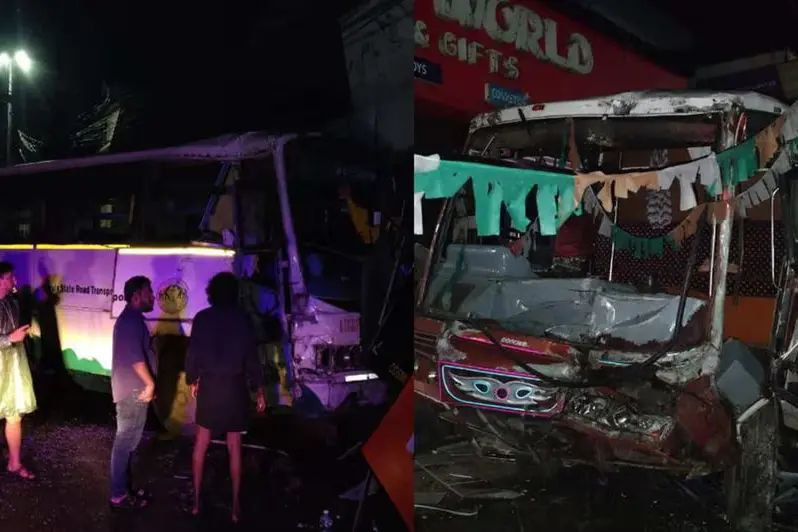 വ്യാഴാഴ്ച്ച പുലർച്ചെ 1.30-നാണു അപകടം. കോഴിക്കോട് നിന്ന് കുമളിയിലേക്കാണ് കെഎസ്ആർടിസി ബസ് സഞ്ചരിച്ചിരുന്നത്. കുന്നംകുളത്തു നിന്ന് മത്സ്യം കയറ്റി ആലത്തൂർ ഭാഗത്തേക്കാണ് ലോറി സഞ്ചരിച്ചിരുന്നത്. അപകടത്തിനു ശേഷം വാഹനങ്ങൾ സമീപത്തെ രണ്ടു കടകളിലേക്ക് ഇടിച്ചു കയറി. പരിക്കേറ്റവരെ കുന്നംകുളത്തെ സ്വകാര്യ ആശുപത്രിയിൽ പ്രവേശിപ്പിച്ചു. ബസ്സിന്റേയും ലോറിയുടേയും മുൻവശം പൂർണ്ണമായി തകർന്നു.