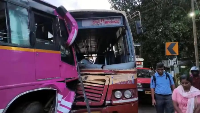 പാഞ്ഞാൾ: വാഴക്കോട്-പ്ലാഴി സംസ്ഥാനപാതയിൽ കിള്ളിമംഗലം ഉദുവടിയിൽ ബസുകൾ കൂട്ടിയിടിച്ച് മുപ്പതോളം പേർക്ക് പരിക്ക്. ചൊവ്വ വൈകിട്ട് 6.45നായിരുന്നു അപകടം. തൃശൂരിൽ നിന്ന് മണ്ണാർക്കാട്ടേക്ക് പോവുകയായിരുന്ന കെഎസ്ആർടിസി ബസും തിരുവില്വാമലയിൽ നിന്ന് തൃശൂരിലേക്ക് വരികയായിരുന്ന സ്വകാര്യബസുമാണ് കൂട്ടിയിടിച്ചത്. ഉദുവടി കള്ള് ഷാപ്പിന് സമീപമുള്ള വളവിൽ കെഎസ്ആർടിസി മറ്റൊരു വാഹനത്തെ മറികടക്കാൻ ശ്രമിക്കവേ എതിരെ വന്ന സ്വകാര്യബസിൽ ഇടിക്കുകയായിരുന്നു. കെഎസ്ആർടിസി ഡ്രൈവർ മുണ്ടൂർ സ്വദേശിയായ കൃഷ്ണകുമാറി (45)നെ ഗുരുതര പരിക്കുകളോടെ മുളങ്കുന്നത്തുകാവ് മെഡിക്കൽ കോളേജ് ആശുപത്രിയിൽ പ്രവേശിപ്പിച്ചു. ഇരു ബസിലെയും 30 ഓളം യാത്രക്കാർക്ക് പരിക്കേറ്റു. പരിക്കേറ്റവരെ ചേലക്കര താലൂക്ക് ആശുപത്രിയിലും ചേലക്കരയിലെ സ്വകാര്യ ആശുപത്രിയിലും ഓട്ടുപാറ ജില്ലാ ആശുപത്രിയിലും പ്രവേശിപ്പിച്ചു. അപകടത്തെ തുടർന്ന് സംസ്ഥാനപാതയിൽ അരമണിക്കൂറിലധികം ഗതാഗതക്കുരുക്കുണ്ടായി.