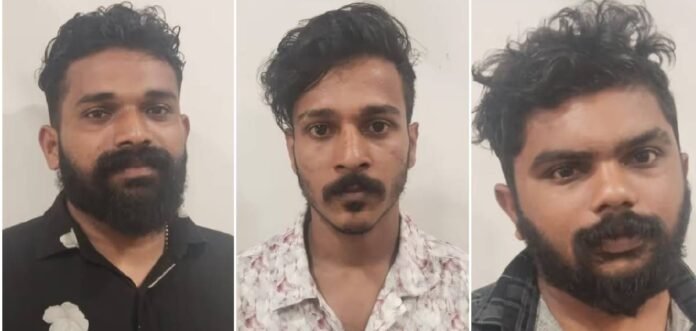 തൃശ്ശൂര്: തൃശ്ശൂരില് കാര് തടഞ്ഞു നിര്ത്തുകയും യുവാവിനെ അസഭ്യം പറഞ്ഞ് വാച്ചും മൊബൈലും തട്ടിയെടുക്കുകയും ചെയ്ത കേസില് പ്രതികള് പിടിയില്. ആനന്ദപുരം ഇടയാട്ടുമുറി സ്വദേശിയായ അപ്പുട്ടി എന്ന അനുരാഗ് (28), നിഖില് (30), പട്ടേപ്പാടം കൊറ്റനല്ലൂര് സ്വദേശിയായ അബ്ദുള് ഷാഹിദ് എന്നിവരെയാണ് പുതുക്കാട് പൊലീസ് അറസ്റ്റ് ചെയ്തത്. കറുകുറ്റി സ്വദേശിയായ 36കാരനെയാണ് പ്രതികള് ആക്രമിച്ചത്.