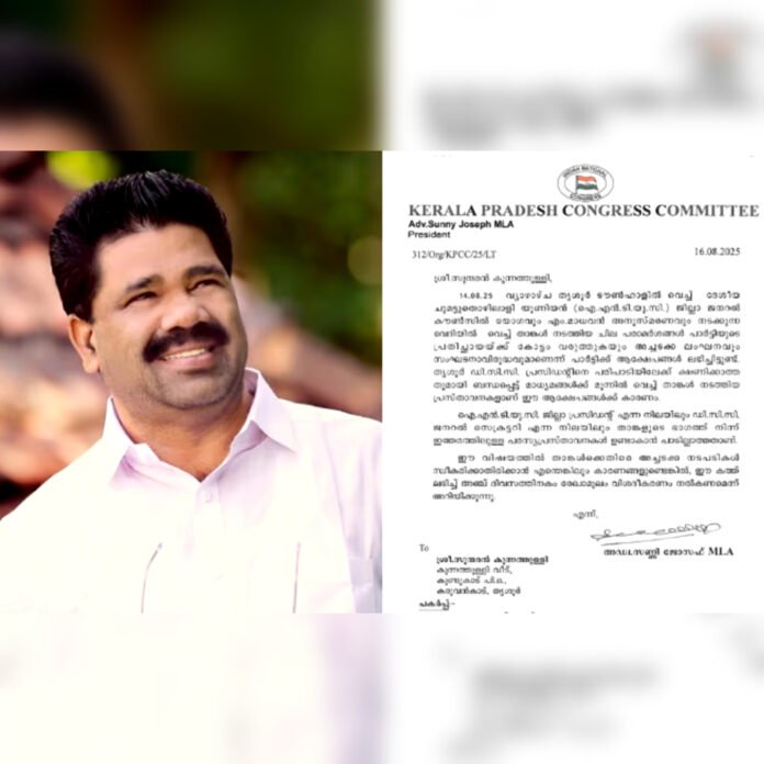 ഡിസിസി അധ്യക്ഷൻ ജോസഫ് ടാജറ്റിനെ ക്ഷണിക്കാത്തതിനെ തുടർന്നാണ് പ്രതിപക്ഷ നേതാവ് വി ഡി സതീശൻ പരിപാടിയിൽ നിന്ന് വിട്ടു നിന്നത്. തുടർന്ന് പരിപാടിയിൽ വച്ച് സുന്ദരൻ കുന്നത്തുള്ളി അതിരൂക്ഷമായ ഭാഷയിൽ ഡിസിസി അധ്യക്ഷനെ വിമർശിച്ചിരുന്നു. ഡിസിസി അധ്യക്ഷന്റെ പരാതിയിലാണ് കെപിസിസി വിശദീകരണം തേടിയിരിക്കുന്നത്. അഞ്ച് ദിവസത്തിനുള്ളിൽ വിശദീകരണം നൽകാനാണ് നിർദേശം.