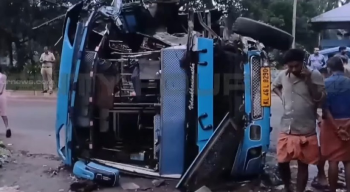 തൃശൂര്- കുറ്റിപ്പുറം സംസ്ഥാനപാതയില് ബസ് മറിഞ്ഞ് അപകടം. 17 പേര്ക്ക് പരുക്കേറ്റു. നാട്ടുകാരും പൊലീസും സംഭവസ്ഥലത്തെത്തി അപകടത്തില്പ്പെട്ട ബസ് റോഡില് നിന്ന് നീക്കാന് ശ്രമം നടത്തിവരികയാണ്. (Bus overturns on Thrissur-Kuttipuram state highway)