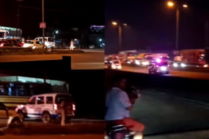 തൃശൂർ മുരിങ്ങൂരിന് സമീപത്തായിരുന്നുസംഭവം. ചാലക്കുടിയിൽ നിന്ന് കൊരട്ടിഭാഗത്തേക്ക് പോകേണ്ട വാഹനങ്ങളാണ്സുരക്ഷാ കാരണങ്ങൾ പറഞ്ഞ് പോലീസ്പൂർണ്ണമായും തടഞ്ഞത്. മുഖ്യമന്ത്രിയുടെവാഹനവ്യൂഹം കടന്നുപോകുന്നതിന്വേണ്ടിയുള്ള വഴിയൊരുക്കൽ കാരണം,ദേശീയപാതയിൽ രണ്ട് കിലോമീറ്ററിലധികംദൂരത്തിൽ വാഹനങ്ങളുടെ നീണ്ട ക്യൂരൂപപ്പെട്ടു. സംഭവം യാത്രക്കാരുടെപ്രതിഷേധത്തിന് ഇരയാക്കി.മുഖ്യമന്ത്രിയുടെ വാഹനം കടന്നുപോയ ശേഷവും, തടഞ്ഞുവെച്ച വാഹനങ്ങൾ ഒറ്റയടിക്ക് മുന്നോട്ട് നീങ്ങിയതോടെ കൊരട്ടി ഭാഗത്തേക്ക് ഗതാഗതക്കുരുക്ക് ഏറെ സമയം നീണ്ടുനിന്നു. ഏറെ നേരത്തിന് ശേഷമാണ് ഗതാഗതം സാധാരണ നിലയിലായത്.