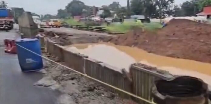 ദേശീയപാതയിൽ തൃശൂർ മുരിങ്ങൂരിൽ വീണ്ടും സർവ്വീസ് റോഡ് ഇടിഞ്ഞു. വീടുകളിലും സ്ഥാപനങ്ങളിലും വെള്ളം കയറി. അശാസ്ത്രീയ നിർമ്മാണങ്ങൾ കാരണമാണ് ഇത്തരം സംഭവങ്ങൾ ഉണ്ടാകുന്നതെന്ന് ജനപ്രതിനിധികളും നാട്ടുകാരും ആരോപിച്ചു.