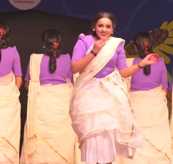 സംസ്ഥാന സ്കൂൾ കലോത്സവ വേദിയിൽ വേറിട്ട കാഴ്ചയായി തിരുവനന്തപുരം കാർമെൽ സ്കൂളിന്റെ സംഘ നൃത്തം. വേഷവിധാനങ്ങളിൽ തുടങ്ങി അവതരണത്തിലടക്കം പുതുമ നിറച്ചാണ് സംഘം നൃത്തം അവതരിപ്പിച്ചത്. മനോഹരമായ നൃത്തച്ചുവടുകളും വ്യത്യസ്തമാർന്ന അവതരണവും ചേർന്നപ്പോൾ ഡാൻസ് വിഡിയോ സമൂഹമാധ്യമങ്ങളിൽ വൈറലായി.ഗുരുവായൂർ നന്ദനം ആയിരുന്നു നൃത്തത്തിന്റെ പ്രമേയം. നവ്യ നായർ പ്രധാന കഥാപാത്രമായി എത്തിയ ‘നന്ദനം’ സിനിമയിലെ റഫറൻസുകളടക്കം ഉപയോഗിച്ചാണ് നൃത്തമൊരുക്കിയിരിക്കുന്നത്. പതിവിൽ നിന്ന് വ്യത്യസ്തമായി നിരവധി പ്രോപ്പർട്ടികളും ഡാൻസിൽ ഉപയോഗിച്ചിട്ടുണ്ട്. കാഴ്ചയിലും അവതരണത്തിലും വ്യത്യസ്തമായ ഡാൻസിന്റെ വിഡിയോ സമൂഹമാധ്യമങ്ങളിലെങ്ങും വൈറലാണ്.