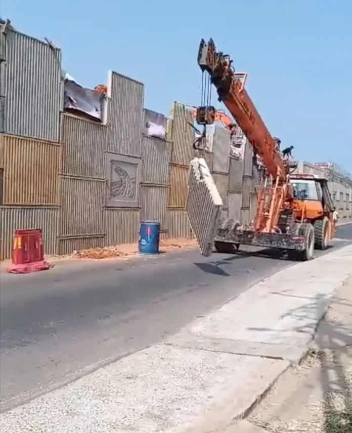 ചാലക്കുടി:ചിറങ്ങരയിൽ ദേശീയപാതയുടെ മേൽപ്പാല നിർമാണത്തിനിടെ സ്ലാബ് വീണ്ടും സർവീസ് റോഡിലേയ്ക്ക് വീണു. ഇത് മൂന്നാം തവണയാണ് സ്ലാബ് വീഴുന്നത്. തലനാരിഴക്കാണ് വാഹന യാത്രികർ രക്ഷപ്പെട്ടത്. മേൽപാല നിർമാണത്തിൻ്റെ ഭാഗമായി മണ്ണിട്ട് നികത്തുന്നതിന് സർവീസ് റോഡിനോട് ചേർന്ന് സ്ഥാപിക്കുന്ന സ്ലാബാണ് വീണത്. ജെസിബി ഉപയോഗിച്ചാണ് സ്ലാബ് ഉയർത്തുന്നത്. എന്നാൽ മതിയായ സജ്ജീകരണങ്ങളോ ക്രമീകരണങ്ങളോ ഇല്ലാതെയാണ് അലക്ഷ്യമായി സ്ലാബ് സ്ഥാപിക്കുന്ന പ്രവർത്തികൾ നടത്തുന്നത്. നേർത്തെ സ്ലാബ് വീണ് വാഹനത്തിന് കേടുപാടുകൾ വന്നിരുന്നു. പിന്നീട് വീണ്ടും സ്ലാബ് വീണപ്പോൾ തൊഴിലാളി അത്ഭുതകരമായി രക്ഷപ്പെട്ടു. റോഡിൽ നിർമാണ പ്രവർത്തികൾ നടത്തുമ്പോൾ ആവശ്യമായ സുരക്ഷാ ക്രമീകരണങ്ങൾ അധികൃതർ ചെയ്യുന്നില്ല. സ്ലാബുകൾ തുടർച്ചായി വീഴുന്ന സാഹചര്യമുണ്ടായിട്ടും ബന്ധപ്പെട്ടവരുടെ ഭാഗത്ത് നിന്നും ആവശ്യമായ നടപടികൾ ഉണ്ടാകുന്നില്ലെന്നാണ് ആക്ഷേപം ഉയരുന്നത്.