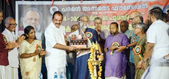 അന്നമനട:അന്നമനട പരമൻ്റെ സ്മരണാർഥം പരമൻ അന്നമനട ഫൗണ്ടേഷൻ ഏർപ്പെടുത്തിയ നാലാമത് സർഗപ്രഭ പുരസ്കാരം കൈതപ്രം ദാമോദരന് ബെന്നി ബഹനാൻ എംപി സമ്മാനിച്ചു.25,000 രൂപയും പ്രശസ്തിപത്രവും ശിൽപ്പവുമാണ് പുരസ്കാരം. പഞ്ചായത്ത് പ്രസിഡന്റ് സുനിത സജീവൻ അധ്യക്ഷയായി. സംഗീത സംവിധായകൻ വിദ്യാധരൻ, ഡോ.സി രാവുണ്ണി എന്നിവർ മുഖ്യാതിഥികളായി. ഫൗണ്ടേഷൻ കൺവീനർ അന്നമനട ബാബുരാജ്, പി കെ കിട്ടൻ, അഡ്വ. വി വി ജയരാമൻ, ടി കെ സതീശൻ, പി ഡി ജോസ്, ഫാത്തിമ നിസാർ, ടി എൽ സുശീലൻ, സുരേഷ് അന്നമനട, ജലാലുദീൻ ഐക്കര, അസീസ് ചാലക്കുടി, കലാഭവൻ ഡെൻസൺ, പി കെ നൗഷാദ്, കെ സി ജഗജീവൻ, സ്മിത പി മേനോൻ, സ്വാതി സുധീർ എന്നിവർ ചടങ്ങിൽ സംസാരിച്ചു. അനുസ്മരണത്തോടനുബന്ധിച്ച് സംഘടിപ്പിച്ച അഖില കേരള ചലച്ചിത്ര ഗാനാലാപന മത്സരത്തിലെ വിജയികൾക്ക് സമ്മാനങ്ങൾ വിതരണം ചെയ്തു. തുടർന്ന് അമ്മു ഔസേപ്പച്ചന്റെ ഭരതനാട്യവും അരങ്ങേറി