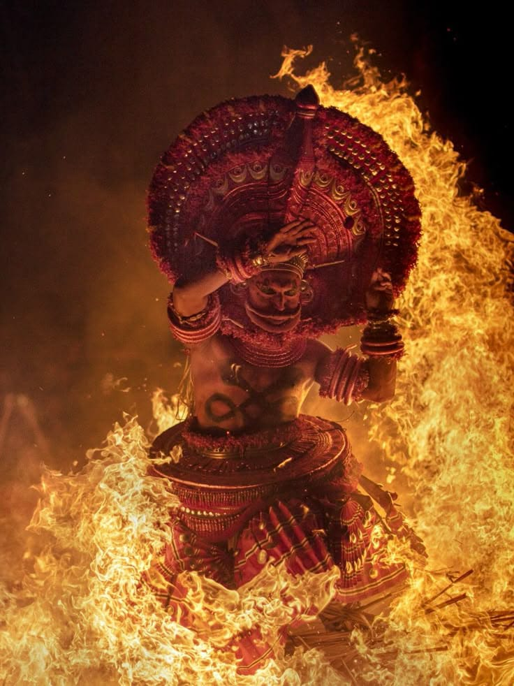 അതെ “തെയ്യം”….! മനുഷ്യൻ ദൈവമാവുകയാണോ ? അതോ ദൈവം മനുഷ്യനാവുകയാണോ ? തെയ്യം എന്ന വാക്കിന്റെ അർത്ഥം ദൈവം എന്നാവുന്നു. ഒരു തെയ്യം കലാകാരൻ തെയ്യക്കോലം കെട്ടിക്കഴിഞ്ഞാൽ തന്റെ സുഹൃത്തുക്കൾ ബന്ധുക്കൾ എന്ന് വേണ്ട ഒരു നാടുമുഴുവൻ അയാളെ ദൈവമായിക്കണ്ട് ആരാധിക്കുന്ന, കൂപ്പുകൈകളോടെ മാത്രം നിൽക്കുന്ന മറ്റൊരു അനുഷ്ഠാനകല കേരളത്തിലില്ല. ആനവാതിൽ ദേശത്ത് രാരോത്ത് മീത്തൽ നാരായണപ്പെരുവണ്ണാൻ ആനവാതിൽ കാരുടെ സ്വന്തം നാരായണേട്ടൻ. തെയ്യം കെട്ടിയാൽ അദ്ദേഹം കേവലമൊരു മനുഷ്യനല്ല ദേവതാ സങ്കൽപ്പമാണ്. കെട്ടിയാടി ദൈവം സംപ്രീതയായാൽ ഒരു നാടിനു മുഴുവൻ അനുഗ്രഹം കിട്ടുമെന്നാണ് സങ്കൽപ്പം.