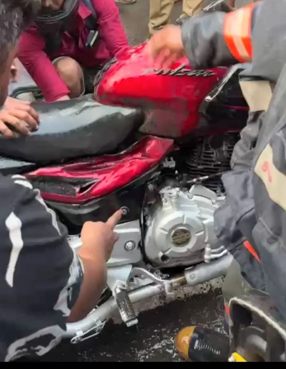 പുതുക്കാട്:സ്റ്റാർട്ട് ചെയ്യുന്നതിനിടെ തീ പടർന്ന് ബൈക്ക് കത്തിനശിച്ചു. പുതുക്കാട് തൊറവിൽ വാടകയ്ക്ക് താമസിക്കുന്ന കൊടകര സ്വദേശി അഭിലാഷിന്റെ ബൈക്കിനാണ് തീപിടിച്ചത്. ബുധൻ വൈകിട്ട് അഞ്ചരയോടെയാണ് സംഭവം. ദേശീയപാത പുതുക്കാട് സിഗ്നലിനോട് ചേർന്ന് കാഞ്ഞൂർ റോഡിലെ കടയിൽ നിന്ന് വന്ന് ബൈക്ക് സ്റ്റാർട്ട് ചെയ്യുന്നതിനിടെ തീ പടരുകയായിരുന്നു. ഉടൻ തന്നെ സമീപത്തുള്ള കടയിൽ നിന്നെടുത്ത ചാക്കുകൾ നനച്ച് ടാങ്കിന് മുകളിൽ ഇട്ടെങ്കിലും തീയണക്കാൻ കഴിഞ്ഞില്ല. പുതുക്കാട് അഗ്നിരക്ഷാ സേനയിലെ സീനിയർ ഫയർ ഓഫീസർ സി രഞ്ജിത്തിന്റെ നേതൃത്വത്തിലുള്ള സംഘമെത്തിയാണ് തീയണച്ചത്.