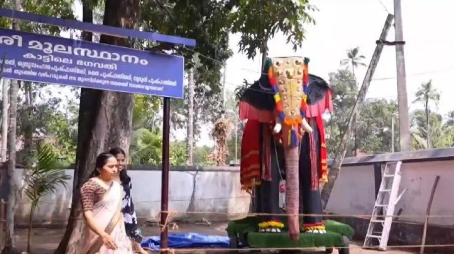തൃശൂർ ക്ഷേത്രത്തിൽ മോട്ടോർ ഘടിപ്പിച്ച ആന; ചെലവ് നാലര ലക്ഷം
