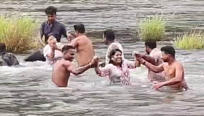 പതിനഞ്ചോളം വിനോദസഞ്ചാരികൾ ബുധനാഴ്ച രാവിലെ കുളിക്കാൻ ഇറങ്ങിയപ്പോഴായിരുന്നു അപകടം. മഴ കാരണമാണ് പെട്ടെന്ന് ജലനിരപ്പ് ഉയർന്നതെന്നു അനുമാനിക്കുന്നു. ഏതാനും മാസങ്ങൾക്കു മുമ്പ് സമാനമായ സംഭവം നടന്നിരുന്നു. അന്നും സ്ത്രീകളടക്കമുള്ളവർ പുഴയുടെ നടുക്ക് കുടുങ്ങി. നാട്ടുകാരാണ് രക്ഷപ്പെടുത്തിയത്.