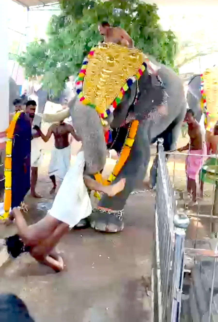 അന്നമനട മഹാദേവ ക്ഷേത്രത്തിൽ ആനയിടഞ്ഞു; യുവാവിനെ തൂക്കിയെറിഞ്ഞു