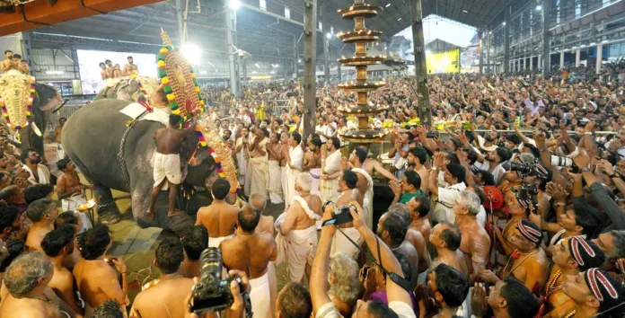 ഗുരുവായൂർ:ജനസഹസ്രങ്ങളെ സാക്ഷിയാക്കി ഗുരുവായൂർ ഉത്സവം ആറാട്ടോടെ കൊടിയിറങ്ങി. തിങ്കളാഴ്ച രാത്രി പത്തിന് നടന്ന ആറാട്ടോടെയും ഓട്ടപ്രദക്ഷിണത്തോടെയുമാണ് പത്തുനാൾ ഗുരുവായൂരിനെ ആഹ്ലാദാരവങ്ങളാൽ മുഖരിതമാക്കിയ ഉത്സവത്തിന് സമാപനമായത്. വൈകിട്ട് നാലോടെ ആറാട്ടിന്റെ അനുബന്ധ ചടങ്ങുകൾക്ക് തുടക്കമായി. വൈകിട്ട് അഞ്ചിന് തന്ത്രി ചേന്നാസ് പി സി ദിനേശൻ നമ്പൂതിരിപ്പാട് പഞ്ചലോഹ വിഗ്രഹം കൊടിമരച്ചുവട്ടിൽ പഴുക്കാമണ്ഡപത്തിലേക്ക് എഴുന്നള്ളിച്ചശേഷം കീഴ്ശാന്തി ചെറുതയൂർ അജിത് നമ്പൂതിരി ദീപാരാധന നടത്തി. ശേഷം ഗ്രാമപ്രദക്ഷിണം തുടങ്ങി. ഗുരുവായൂർ ദാമോദർദാസ് പഞ്ചലോഹ തിടമ്പോടുകൂടിയ സ്വർണക്കോലമേറ്റി. വാളും, പരിചയും ഏന്തിയ കൃഷ്ണനാട്ടം കലാകാരൻമാരുടെ അകമ്പടിയോടെ ചോറ്റാനിക്കര വിജയൻ മാരാർ, പരയ്ക്കാട് തങ്കപ്പൻ, കുനിശേരി അനിയൻ മാരാർ, ചെർപ്പുളശേരി ശിവൻ എന്നിവരുടെ നേതൃത്വത്തിലുള്ള പഞ്ചവാദ്യത്തിൻ്റെ അകമ്പടിയോടെയാണ് ഗ്രാമപ്രദക്ഷിണം ആരംഭിച്ചത്. തുടർന്ന് വടക്കേ നടയ്ക്കൽ എഴുന്നള്ളിച്ചു നിർത്തിയശേഷം പഞ്ചവാദ്യം അവസാനിപ്പിച്ച് പെരുവനം കുട്ടൻമാരാർ, തിരുവല്ല രാധാകൃഷ്ണൻ, ചൊവ്വല്ലൂർ മോഹനൻ എന്നിവരുടെ നേതൃത്വത്തിലുള്ള മേളം തുടങ്ങി. പ്രദക്ഷിണം കഴിഞ്ഞ് വിഗ്രഹവുമായി രാത്രി പത്തോടെ ക്ഷേത്രത്തിലൂടെ ആറാട്ട് കടവിലെത്തി. പുണ്യാഹത്തിനുശേഷം പഞ്ചലോഹത്തിൽ തീർത്ത ശ്രീകൃഷ്ണ വിഗ്രഹം ആനയിച്ചു. തന്ത്രി ചേന്നാസ് പി സി നമ്പൂതിരിപ്പാട് വിഗ്രഹവുമായി തീർഥക്കുളത്തിൽ സ്നാനം ചെയ്തു. ക്ഷേത്രത്തിലെ ഇടത്തരികത്തുകാവിലെ വാതിൽ മാടത്തിൽ ഉച്ചപ്പൂജ നിവേദ്യത്തിന് ശേഷം വിഗ്രഹവുമായി ആനപ്പുറത്ത് 11 ഓട്ടപ്രദിക്ഷണം നടത്തി. അർധരാത്രി തന്ത്രി ചേന്നാസ് പി സി ദിനേശൻ നമ്പൂതിരിപ്പാട് ഉത്സവം കൊടിയിറക്കി. ആറാട്ടിന്റെ ഭാഗമായി ഗ്രാമപ്രദക്ഷിണത്തിനിറങ്ങിയപ്പോൾ ജാതി മതഭേദമില്ലാതെ ഗുരുവായൂർ ക്ഷേത്രപാതകളിൽ ആയിരക്കണക്കിന് നിറപറകളുമായി സ്വീകരിക്കാൻ നിരന്നു.